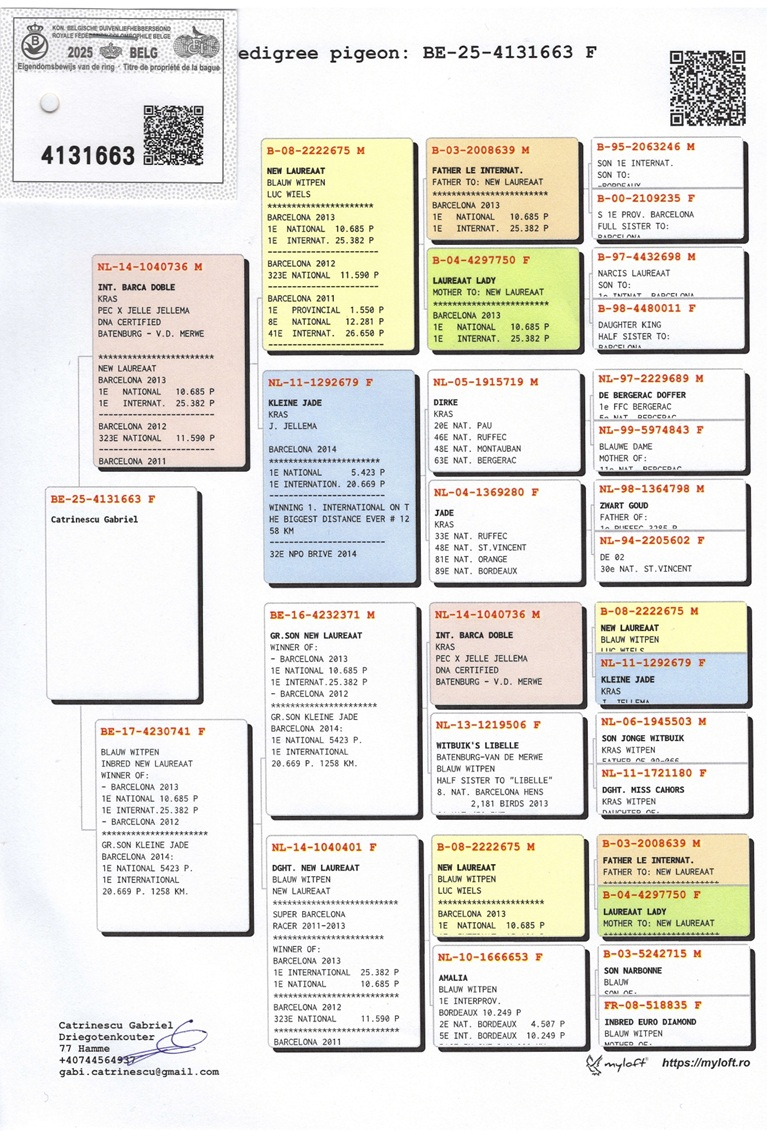 Der Wert der von Gabriel Catrinescu angebotenen Tauben geht weit über den Stammbaum hinaus. Er wird durch konstante nationale Erfolge bestätigt, darunter: