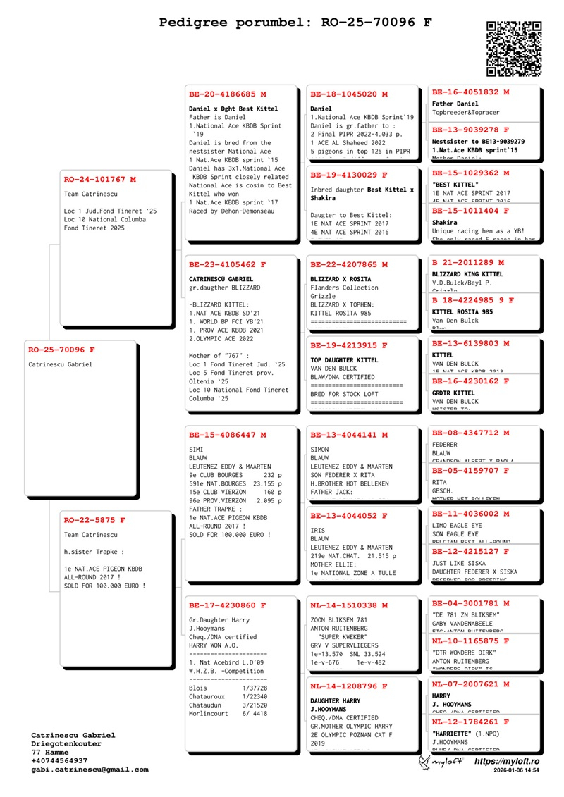 Gabriel Catrinescu bietet keine leeren Versprechen, sondern Kontinuität in Exzellenz. Für jene, die echte Qualität und nachgewiesene Leistung suchen, ist diese Auktion eine dezente, aber entschlossene Einladung zum Kern der modernen Brieftaubenzucht – dorthin, wo sich wahre Werte im Flug bestätigen.