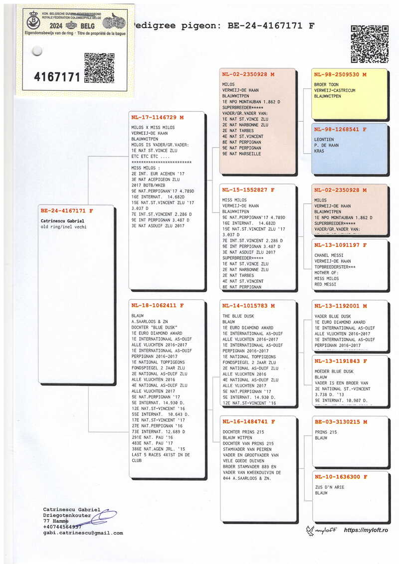 Der Wert der von Gabriel Catrinescu angebotenen Tauben geht weit über den Stammbaum hinaus. Er wird durch konstante nationale Erfolge bestätigt, darunter: