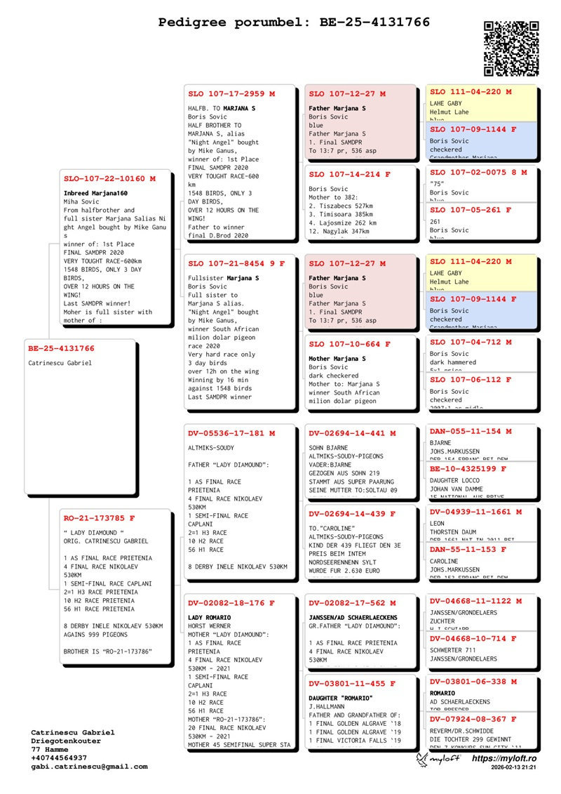 Der Wert der von Gabriel Catrinescu angebotenen Tauben geht weit über den Stammbaum hinaus. Er wird durch konstante nationale Erfolge bestätigt, darunter: