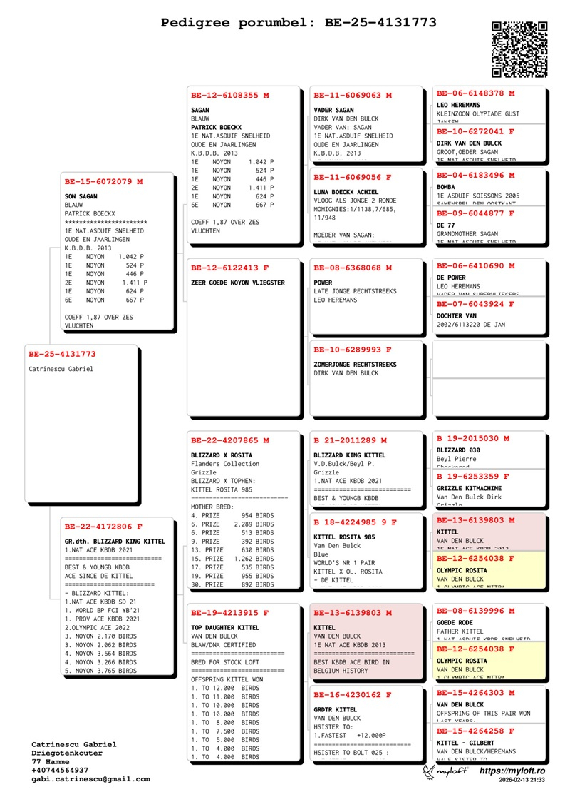 Gabriel Catrinescu bietet keine leeren Versprechen, sondern Kontinuität in Exzellenz. Für jene, die echte Qualität und nachgewiesene Leistung suchen, ist diese Auktion eine dezente, aber entschlossene Einladung zum Kern der modernen Brieftaubenzucht – dorthin, wo sich wahre Werte im Flug bestätigen.