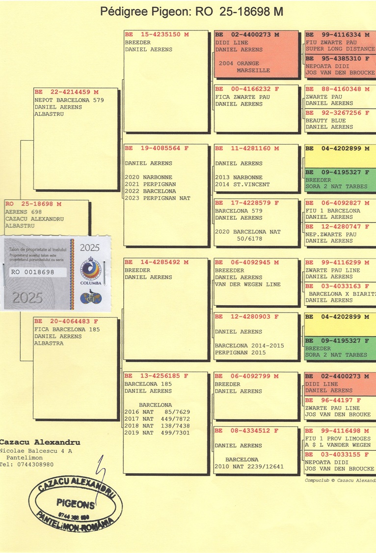 Mit einer beeindruckenden Zuchtbasis von über 350 Zuchttauben, darunter 100 für den Marathon spezialisiert, führt Cazacu eine der bestorganisierten Zuchtanlagen des Landes. Seine Tauben stammen aus renommierten europäischen Blutlinien – Koopman, Vandenabeele, Van den Bulck, Heremans, Hooymans, Jelle Jellema, Cor de Heijde, Pollin, Hebberecht, Vandenheede u. a. – sorgfältig ausgewählt für jede Wettbewerbskategorie.