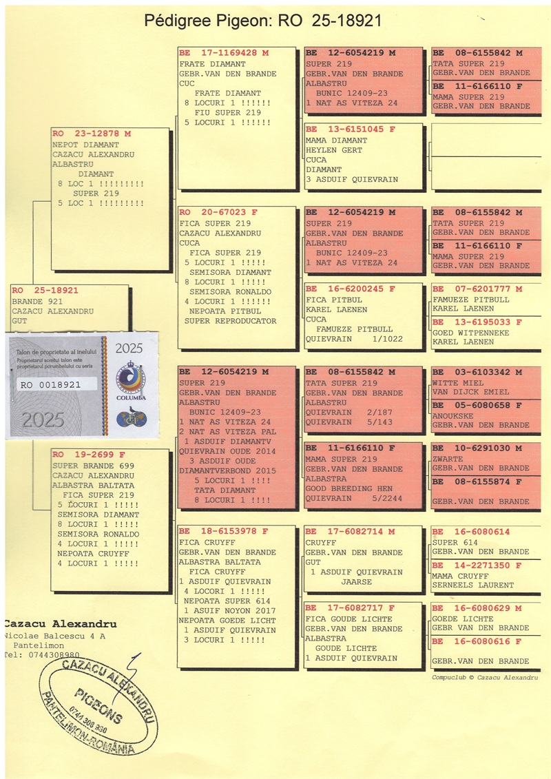 Alexandru Cazacu ist nicht nur ein mehrfacher Champion, sondern auch ein Züchter, der Tradition mit modernen Methoden, Intuition mit genetischer Strenge verbindet. Mit Ergebnissen, Ernsthaftigkeit und klarer Strategie trägt er aktiv zur Weiterentwicklung und Modernisierung des rumänischen Brieftaubensports bei.