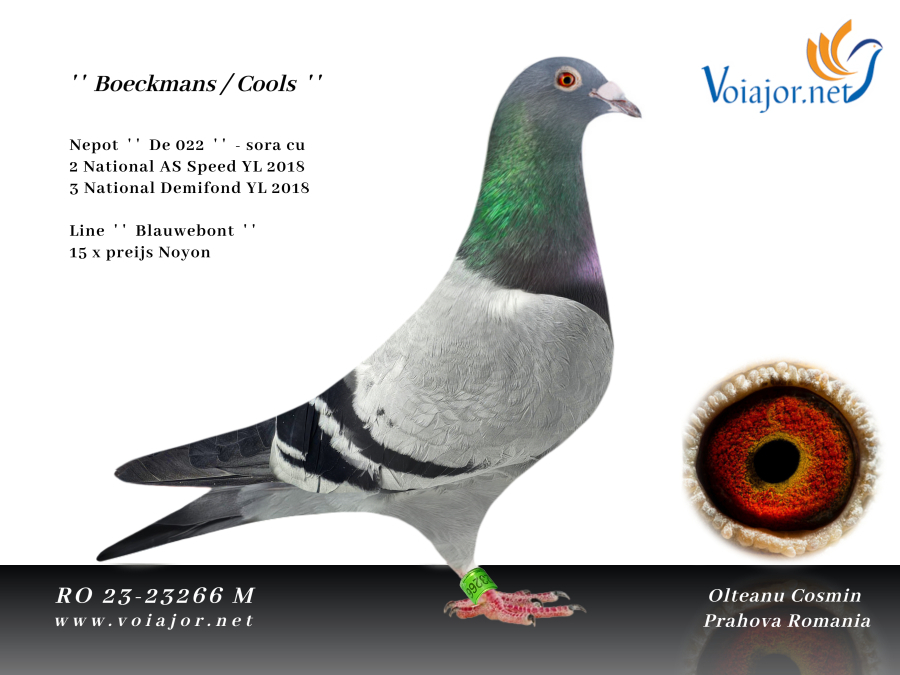 Der Ursprung dieser herausragenden Leistungen ist kein Zufall: Die Siegerin stammt von einem Rudy Van Reeth-Vogel und einer Jos Cools-Taube ab, während die Vizemeisterin aus einem Jos Cools-Vogel und der berühmten Taube 484, einer olympischen Taube aus Olteanus eigenem Schlag, gezüchtet wurde.