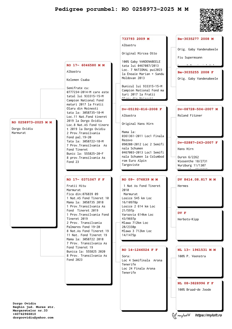 Ovidiu Dorgo ist ein angesehener Taubenzüchter aus dem Kreis Mureș, ursprünglich aus Reghin. Obwohl er noch relativ neu in der Welt des Taubensports ist, hat er sich durch Ehrgeiz und Entschlossenheit in den Marathon-Wettbewerben einen Namen gemacht. Er begann seine Tätigkeit im Jahr 2017 und konzentrierte sich von Anfang an auf Langstreckenflüge. Bereits nach zwei Jahren, im Jahr 2019, erzielte er seine ersten bemerkenswerten Ergebnisse und zeigte damit sein großes sportliches Potenzial.