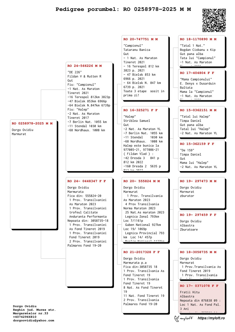 Ovidiu Dorgo ist ein angesehener Taubenzüchter aus dem Kreis Mureș, ursprünglich aus Reghin. Obwohl er noch relativ neu in der Welt des Taubensports ist, hat er sich durch Ehrgeiz und Entschlossenheit in den Marathon-Wettbewerben einen Namen gemacht. Er begann seine Tätigkeit im Jahr 2017 und konzentrierte sich von Anfang an auf Langstreckenflüge. Bereits nach zwei Jahren, im Jahr 2019, erzielte er seine ersten bemerkenswerten Ergebnisse und zeigte damit sein großes sportliches Potenzial.