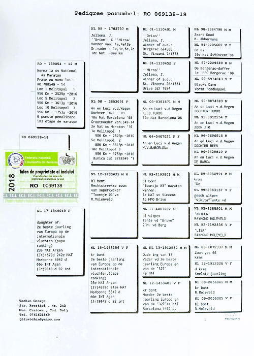 - Internationaler Versand: 250 RON (50 EUR) pro Taube, für Lieferungen außerhalb Rumäniens.