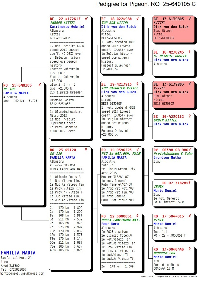 Im Laufe der Jahre hat sich Daniel den Respekt der Taubenzüchtergemeinschaft erworben, nicht nur durch seine Ergebnisse, sondern auch durch die Hingabe und Sorgfalt, mit der er seine Volieren pflegt und seinen Tauben das bestmögliche Umfeld für ihre Entwicklung bietet. Seine Taubenzucht in Ineu ist ein wahres Heiligtum des Friedens und der Leidenschaft, wo die alten Traditionen der Taubenzucht harmonisch mit seiner aufrichtigen Liebe zu diesen edlen Vögeln, den Symbolen des Taubensports, verschmelzen.