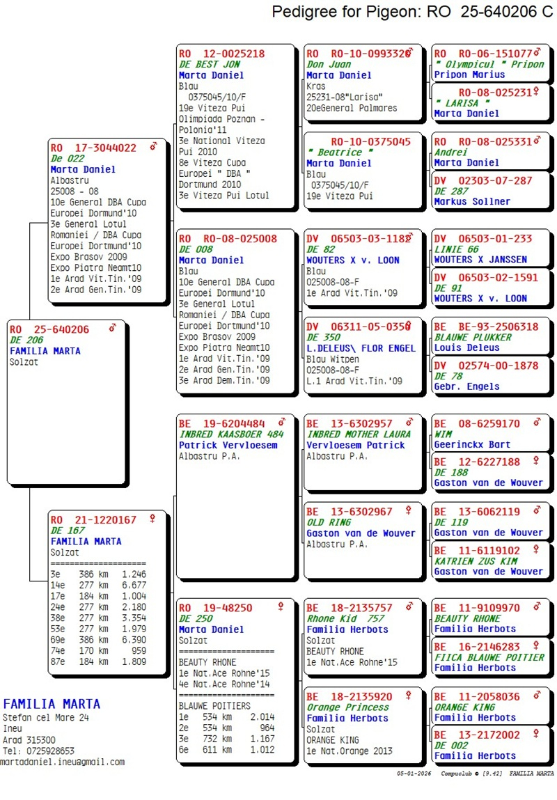 Im Laufe der Jahre hat sich Daniel den Respekt der Taubenzüchtergemeinschaft erworben, nicht nur durch seine Ergebnisse, sondern auch durch die Hingabe und Sorgfalt, mit der er seine Volieren pflegt und seinen Tauben das bestmögliche Umfeld für ihre Entwicklung bietet. Seine Taubenzucht in Ineu ist ein wahres Heiligtum des Friedens und der Leidenschaft, wo die alten Traditionen der Taubenzucht harmonisch mit seiner aufrichtigen Liebe zu diesen edlen Vögeln, den Symbolen des Taubensports, verschmelzen.