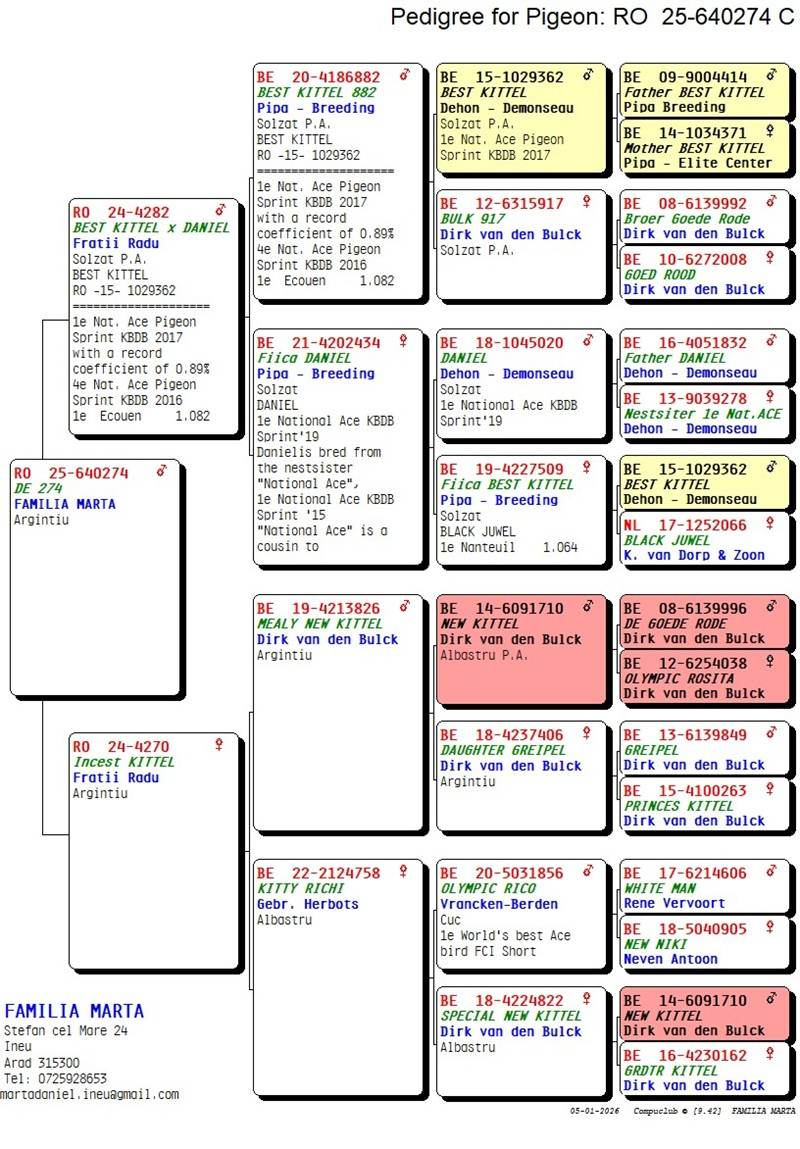Im Laufe der Jahre hat sich Daniel den Respekt der Taubenzüchtergemeinschaft erworben, nicht nur durch seine Ergebnisse, sondern auch durch die Hingabe und Sorgfalt, mit der er seine Volieren pflegt und seinen Tauben das bestmögliche Umfeld für ihre Entwicklung bietet. Seine Taubenzucht in Ineu ist ein wahres Heiligtum des Friedens und der Leidenschaft, wo die alten Traditionen der Taubenzucht harmonisch mit seiner aufrichtigen Liebe zu diesen edlen Vögeln, den Symbolen des Taubensports, verschmelzen.