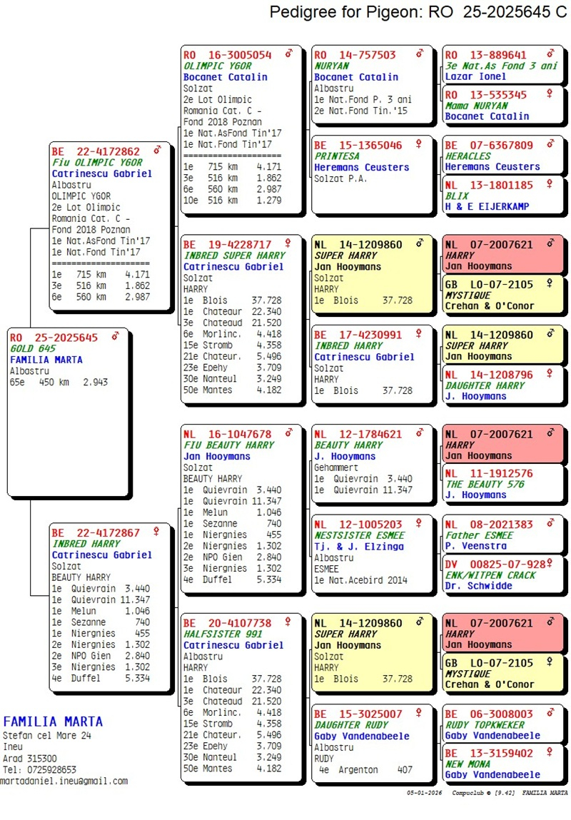 Marta Daniel, ursprünglich aus Ineu, Kreis Arad, ist bekannt für seine bemerkenswerte Leidenschaft für den Taubensport, eine edle und fesselnde Tradition, die tief in den ländlichen Gebieten Rumäniens verwurzelt ist. Sein Hof strahlt Vitalität und Eleganz aus, belebt durch den anmutigen Flug seiner Tauben, wobei jede Taube mit großer Sorgfalt und tiefer Hingabe gepflegt wird. Jede Taube, ob erfahrener Reiseflieger oder junges Exemplar, verkörpert den tiefen Respekt, den Daniel für diese Geschöpfe hegt.