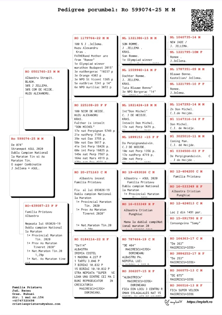 Das Jahr 2020 stellte einen Meilenstein in der Laufbahn der Familie Pristavu dar: Sie errang doppelte nationale Meistertitel in den Kategorien Marathon Jungtauben und AS Marathon Jungtauben, mit einer bemerkenswerten Punktzahl von 22,14 Punkten – ein Rekord, der die außergewöhnliche Qualität ihrer Zucht bestätigt.
