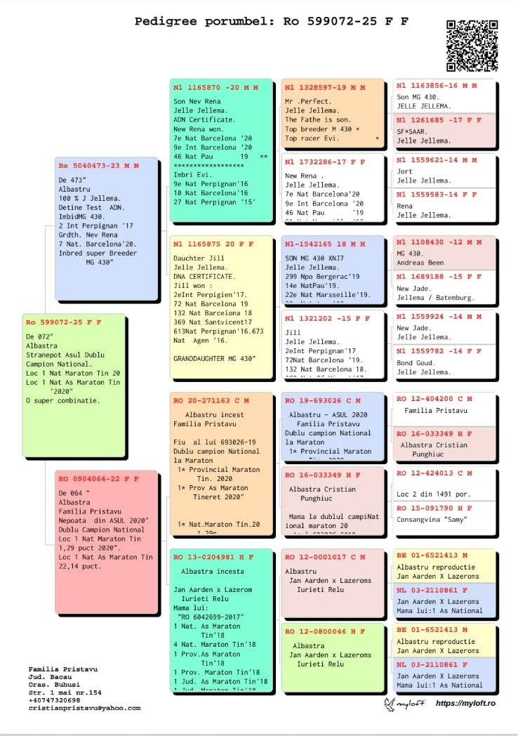 Die Familie Pristavu gilt als ein wahrer Maßstab im Bereich der Brieftaubenzucht im Kreis Bacău und ist erfolgreich im Club 4/2 Buhuși tätig, wo sie herausragende Ergebnisse in Marathon-Wettbewerben erzielt hat.