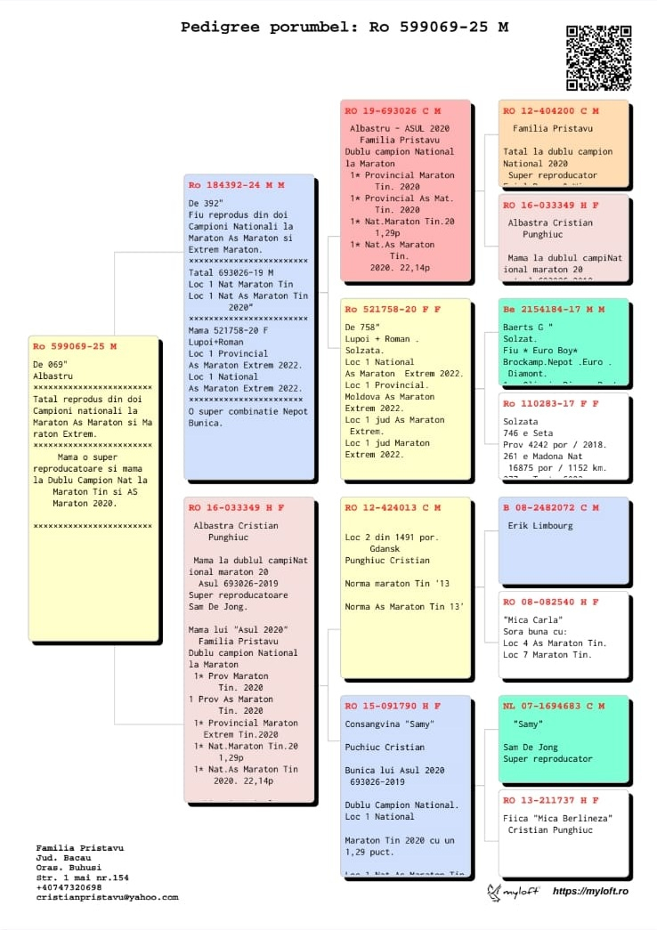 Die Familie Pristavu gilt als ein wahrer Maßstab im Bereich der Brieftaubenzucht im Kreis Bacău und ist erfolgreich im Club 4/2 Buhuși tätig, wo sie herausragende Ergebnisse in Marathon-Wettbewerben erzielt hat.
