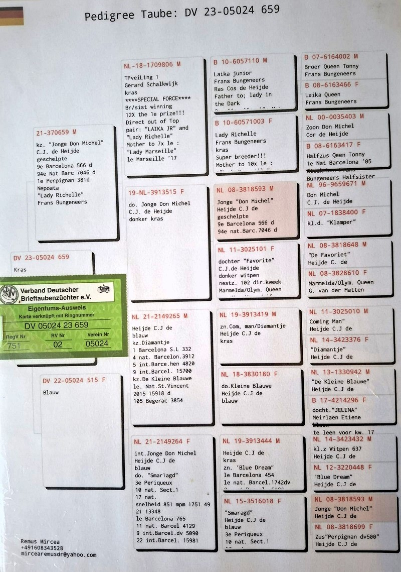 Ihr Erfolg beruht auf einer soliden Zuchtbasis, bestehend aus Tauben edler Herkunft, unter anderem aus den Linien von Emil Denys, Gerard van Tuyl, Frans Bruggeman und Cor de Heijde, wodurch der nationale Durchbruch nur eine Frage der Zeit war.