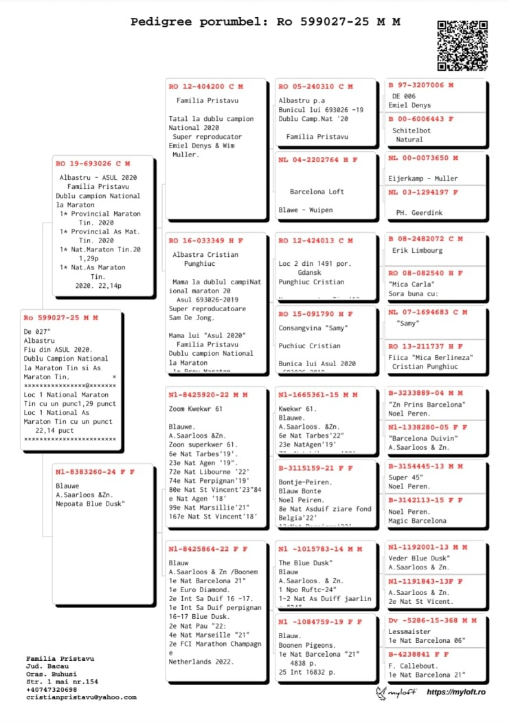 Die Familie Pristavu gilt als ein wahrer Maßstab im Bereich der Brieftaubenzucht im Kreis Bacău und ist erfolgreich im Club 4/2 Buhuși tätig, wo sie herausragende Ergebnisse in Marathon-Wettbewerben erzielt hat.