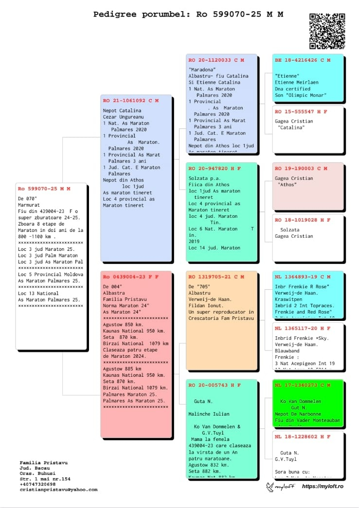 Die Familie Pristavu gilt als ein wahrer Maßstab im Bereich der Brieftaubenzucht im Kreis Bacău und ist erfolgreich im Club 4/2 Buhuși tätig, wo sie herausragende Ergebnisse in Marathon-Wettbewerben erzielt hat.