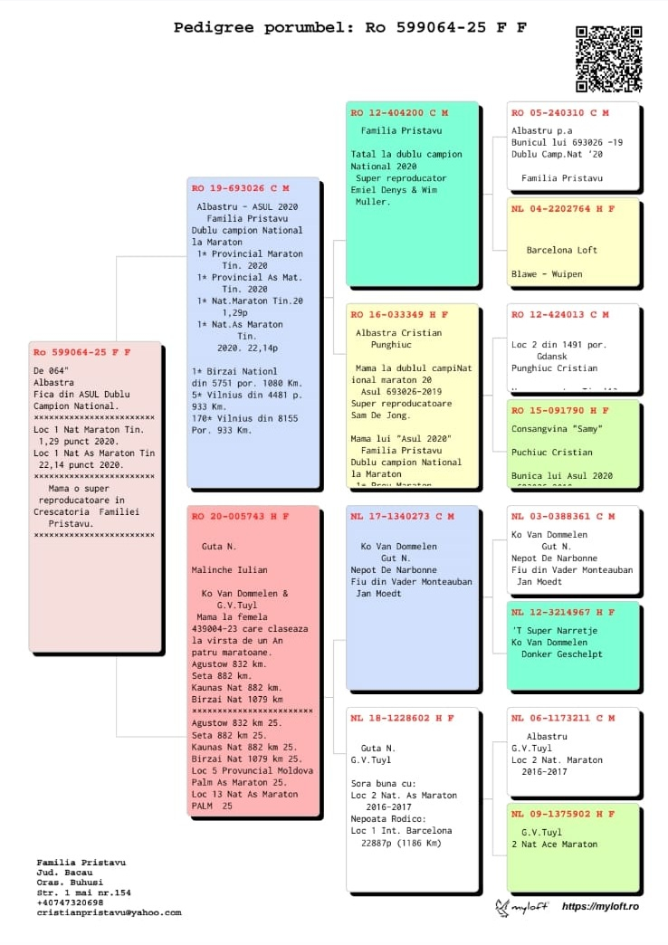 Die Familie Pristavu gilt als ein wahrer Maßstab im Bereich der Brieftaubenzucht im Kreis Bacău und ist erfolgreich im Club 4/2 Buhuși tätig, wo sie herausragende Ergebnisse in Marathon-Wettbewerben erzielt hat.