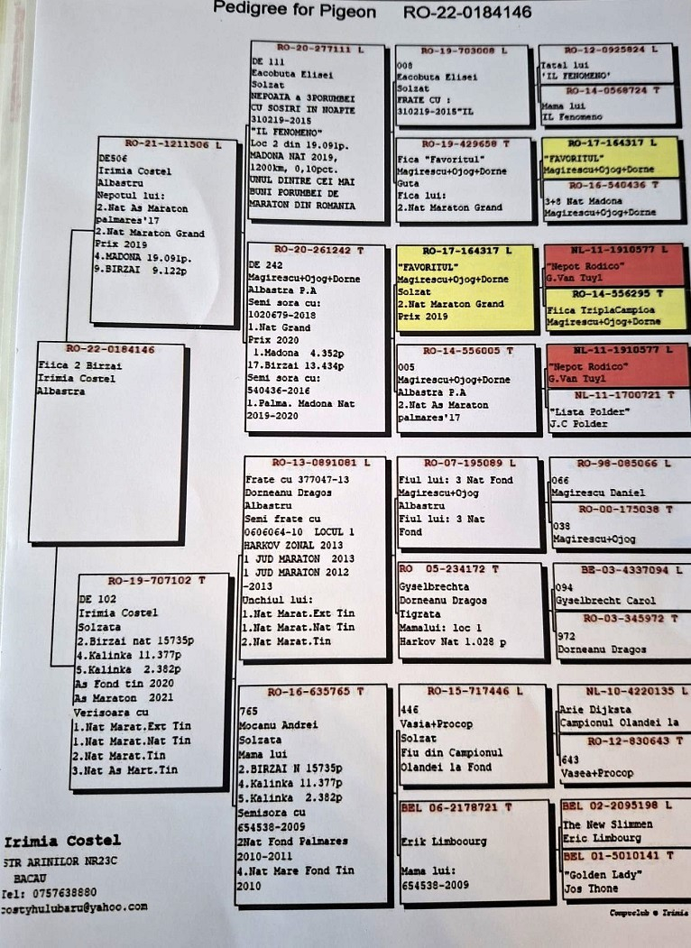 Das Jahr 2020 stellte einen Meilenstein in der Laufbahn der Familie Pristavu dar: Sie errang doppelte nationale Meistertitel in den Kategorien Marathon Jungtauben und AS Marathon Jungtauben, mit einer bemerkenswerten Punktzahl von 22,14 Punkten – ein Rekord, der die außergewöhnliche Qualität ihrer Zucht bestätigt.