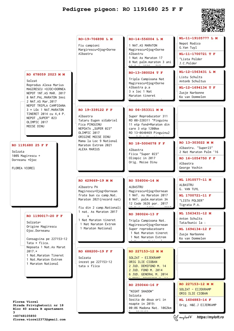 Viorel Florea, ein Züchter aus Suceava, begann 2020 im Rahmen des Taubenzuchtvereins Burdujeni mit dem Wettbewerb. Derzeit ist er Mitglied des Taubenzuchtvereins Phoenix - Suceava, wo er mit erstklassigen Tauben antritt, die von renommierten Züchtern wie den Gagea-Brüdern, Bogdan Ciobanu, Petru Schirod und Marius Alexa stammen.