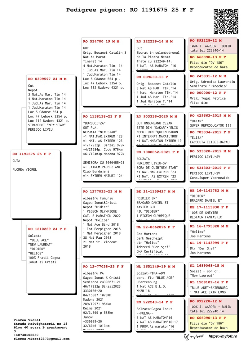 Viorel Florea, ein Züchter aus Suceava, begann 2020 im Rahmen des Taubenzuchtvereins Burdujeni mit dem Wettbewerb. Derzeit ist er Mitglied des Taubenzuchtvereins Phoenix - Suceava, wo er mit erstklassigen Tauben antritt, die von renommierten Züchtern wie den Gagea-Brüdern, Bogdan Ciobanu, Petru Schirod und Marius Alexa stammen.