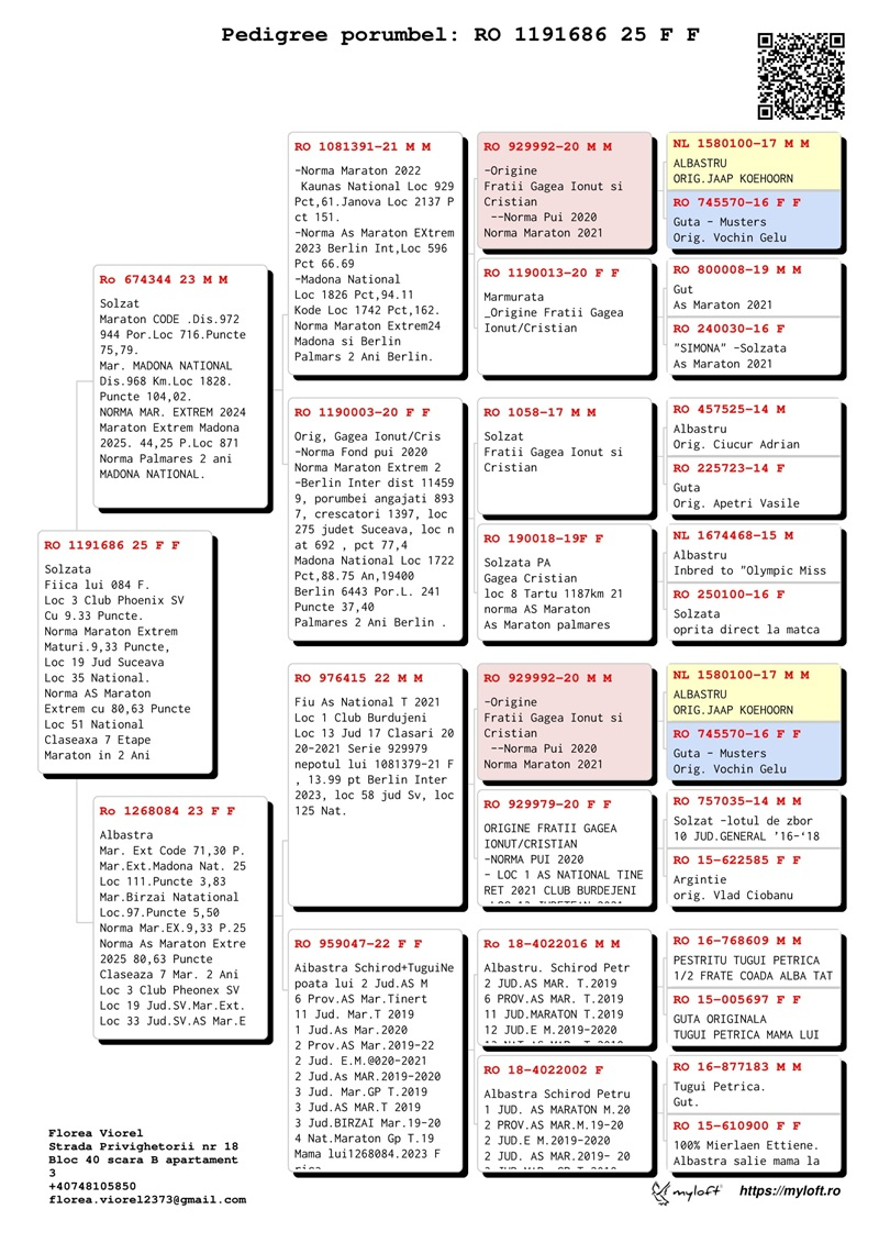 Viorel Florea, ein Züchter aus Suceava, begann 2020 im Rahmen des Taubenzuchtvereins Burdujeni mit dem Wettbewerb. Derzeit ist er Mitglied des Taubenzuchtvereins Phoenix - Suceava, wo er mit erstklassigen Tauben antritt, die von renommierten Züchtern wie den Gagea-Brüdern, Bogdan Ciobanu, Petru Schirod und Marius Alexa stammen.