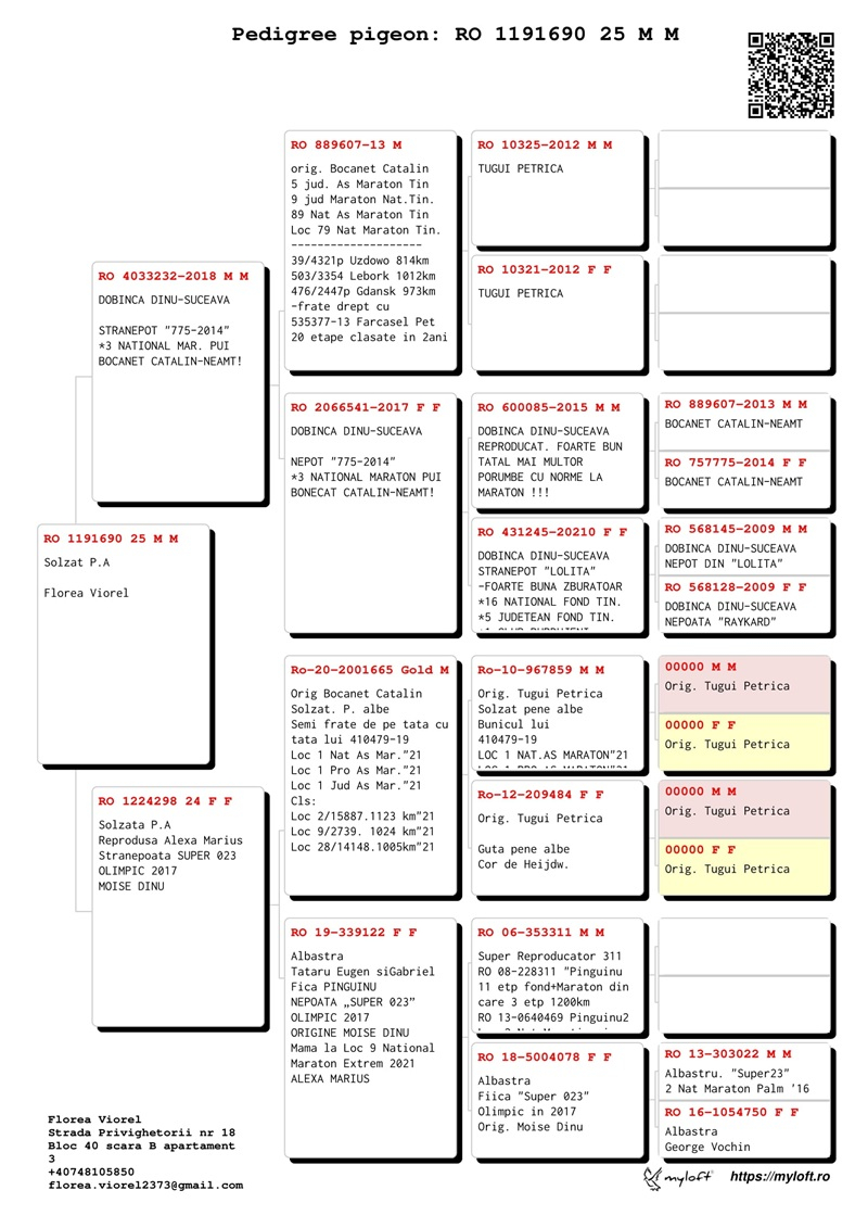 Viorel Florea, ein Züchter aus Suceava, begann 2020 im Rahmen des Taubenzuchtvereins Burdujeni mit dem Wettbewerb. Derzeit ist er Mitglied des Taubenzuchtvereins Phoenix - Suceava, wo er mit erstklassigen Tauben antritt, die von renommierten Züchtern wie den Gagea-Brüdern, Bogdan Ciobanu, Petru Schirod und Marius Alexa stammen.