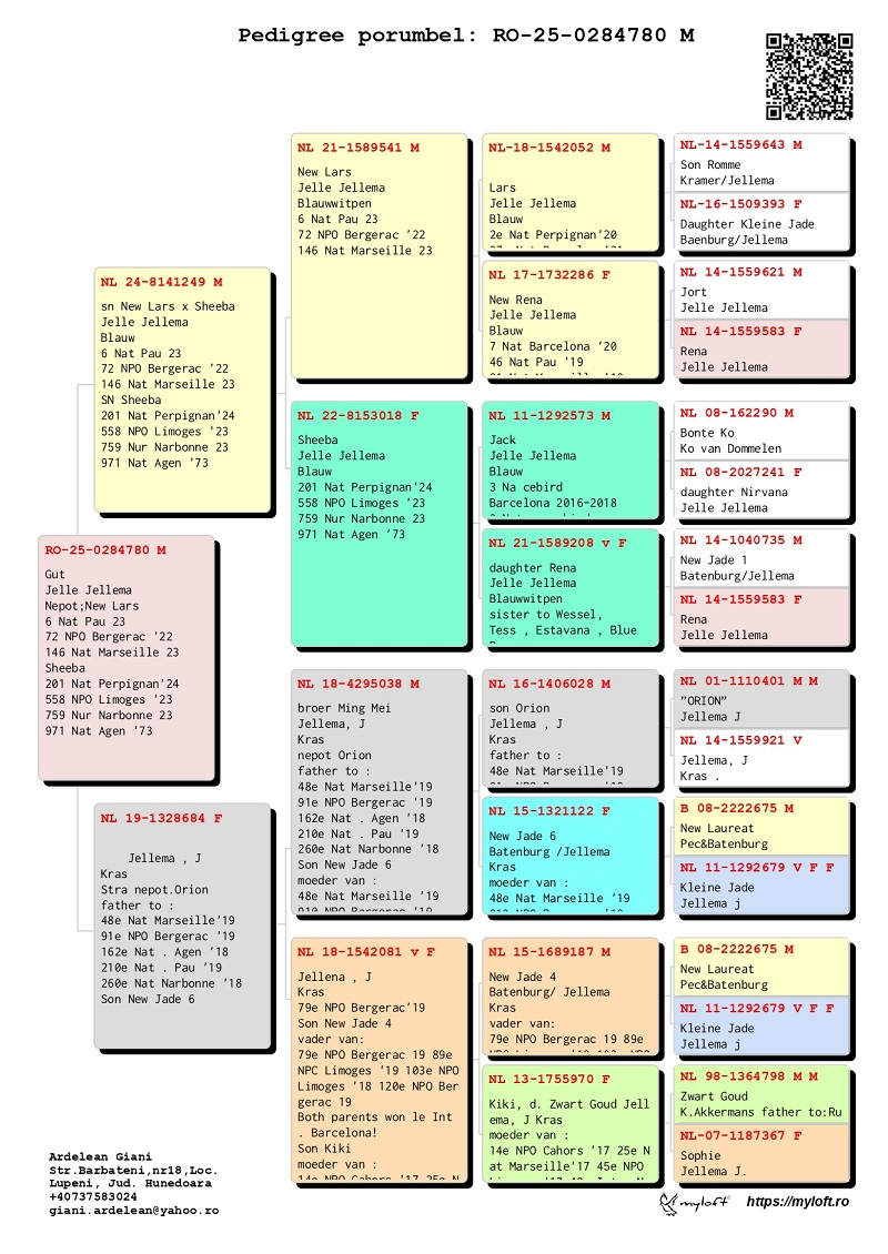 Derzeit bietet Herr Ardelean eine Gruppe von 12 Tauben mit Elite-Herkünften zum Verkauf an, die dazu bestimmt sind, die Tradition des Erfolges fortzusetzen. Die Ergebnisse von Züchtern, die diese Tauben in ihre Schläge integriert haben, bestätigen ihren genetischen Wert: