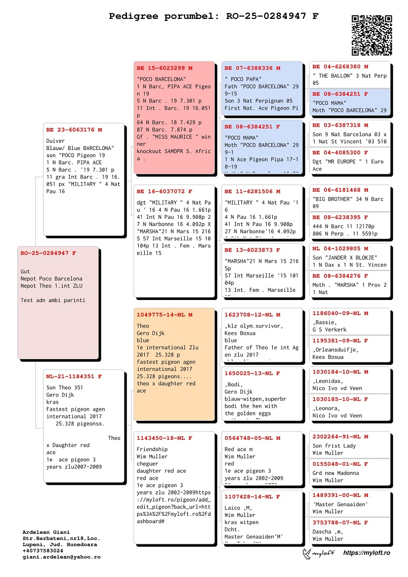 Derzeit bietet Herr Ardelean eine Gruppe von 12 Tauben mit Elite-Herkünften zum Verkauf an, die dazu bestimmt sind, die Tradition des Erfolges fortzusetzen. Die Ergebnisse von Züchtern, die diese Tauben in ihre Schläge integriert haben, bestätigen ihren genetischen Wert: