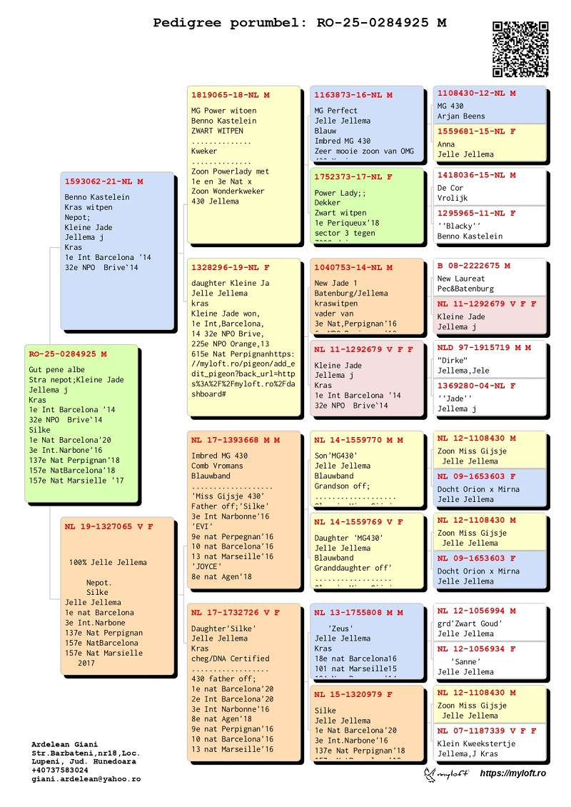 Derzeit bietet Herr Ardelean eine Gruppe von 12 Tauben mit Elite-Herkünften zum Verkauf an, die dazu bestimmt sind, die Tradition des Erfolges fortzusetzen. Die Ergebnisse von Züchtern, die diese Tauben in ihre Schläge integriert haben, bestätigen ihren genetischen Wert: