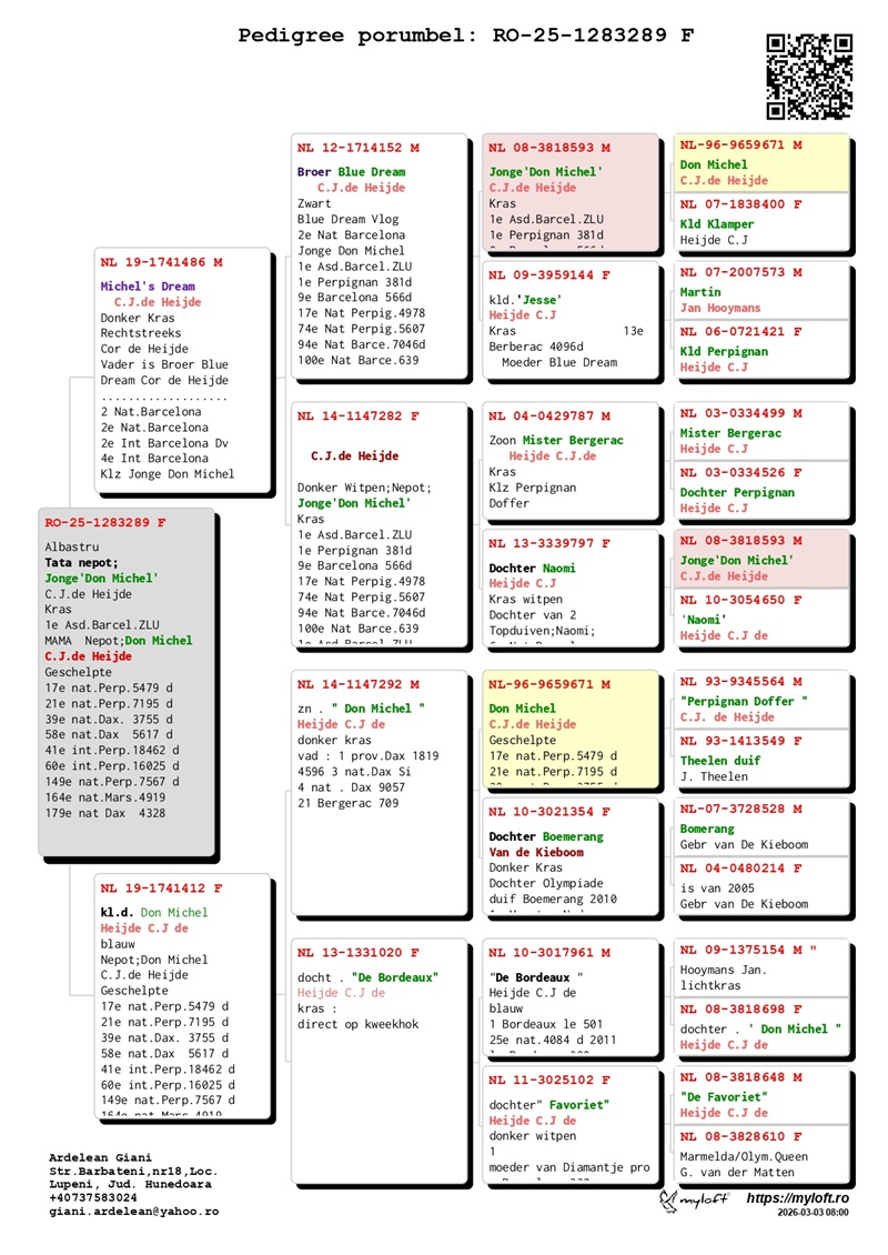 Derzeit bietet Herr Ardelean eine Gruppe von 12 Tauben mit Elite-Herkünften zum Verkauf an, die dazu bestimmt sind, die Tradition des Erfolges fortzusetzen. Die Ergebnisse von Züchtern, die diese Tauben in ihre Schläge integriert haben, bestätigen ihren genetischen Wert: