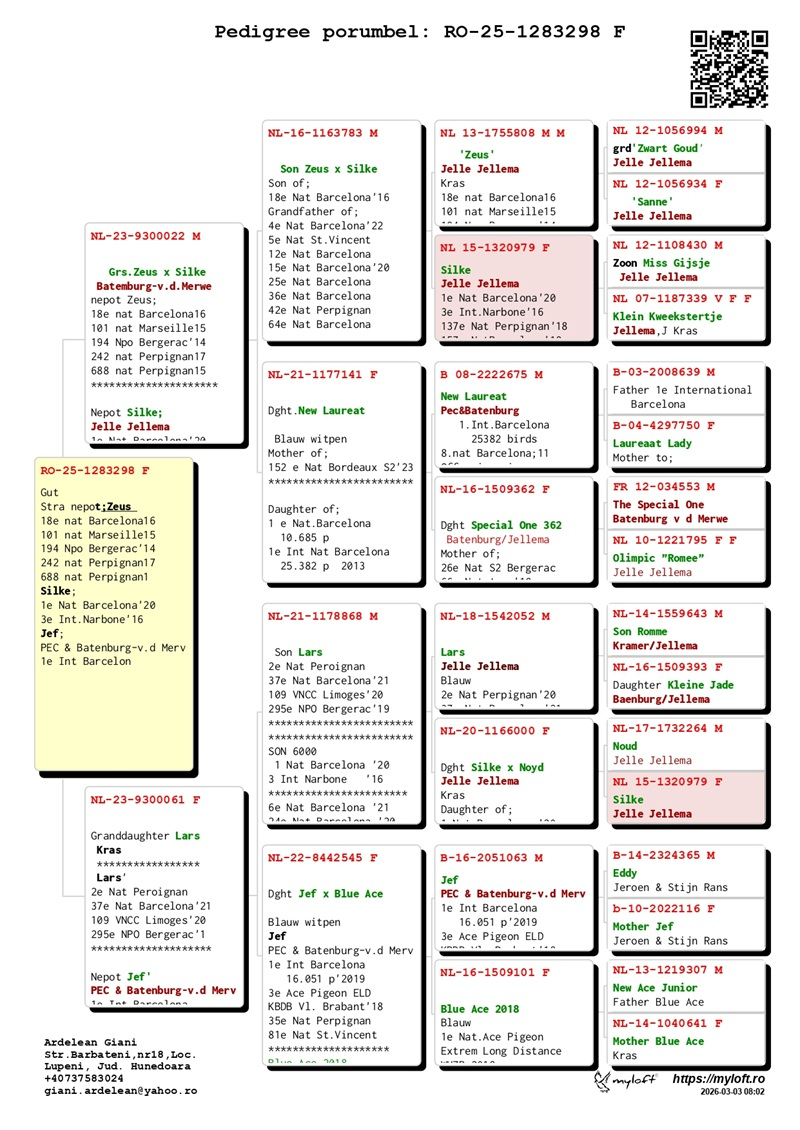 Der Beitrag von Giani Ardelean geht über seinen eigenen Schlag hinaus. Durch Kooperationen und das Teilen seiner Erfahrung trägt er dazu bei, die Standards der rumänischen Brieftaubenzucht zu erhöhen und eine neue Generation von Liebhabern zu inspirieren. Mit echter Leidenschaft, großer Erfahrung und unbeirrbarer Entschlossenheit ist er ein wahres Vorbild für Exzellenz und Durchhaltevermögen im Brieftaubensport.