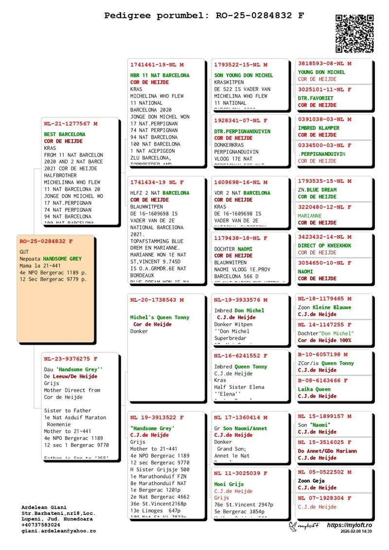 Derzeit bietet Herr Ardelean eine Gruppe von 12 Tauben mit Elite-Herkünften zum Verkauf an, die dazu bestimmt sind, die Tradition des Erfolges fortzusetzen. Die Ergebnisse von Züchtern, die diese Tauben in ihre Schläge integriert haben, bestätigen ihren genetischen Wert: