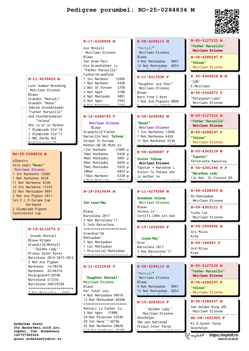 Der Beitrag von Giani Ardelean geht über seinen eigenen Schlag hinaus. Durch Kooperationen und das Teilen seiner Erfahrung trägt er dazu bei, die Standards der rumänischen Brieftaubenzucht zu erhöhen und eine neue Generation von Liebhabern zu inspirieren. Mit echter Leidenschaft, großer Erfahrung und unbeirrbarer Entschlossenheit ist er ein wahres Vorbild für Exzellenz und Durchhaltevermögen im Brieftaubensport.