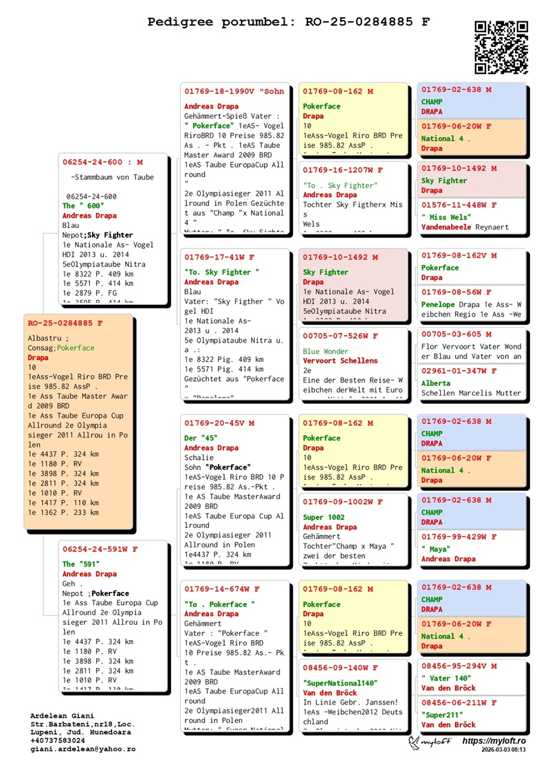 Der Beitrag von Giani Ardelean geht über seinen eigenen Schlag hinaus. Durch Kooperationen und das Teilen seiner Erfahrung trägt er dazu bei, die Standards der rumänischen Brieftaubenzucht zu erhöhen und eine neue Generation von Liebhabern zu inspirieren. Mit echter Leidenschaft, großer Erfahrung und unbeirrbarer Entschlossenheit ist er ein wahres Vorbild für Exzellenz und Durchhaltevermögen im Brieftaubensport.