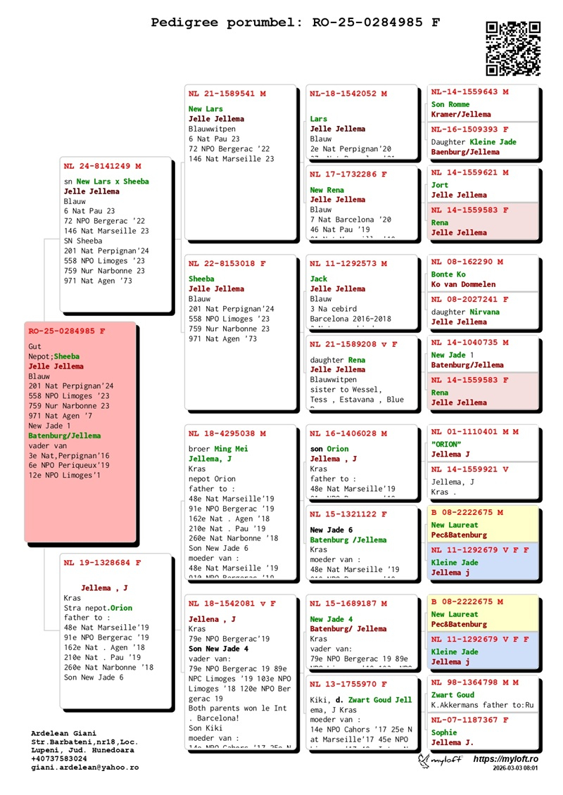 Derzeit bietet Herr Ardelean eine Gruppe von 12 Tauben mit Elite-Herkünften zum Verkauf an, die dazu bestimmt sind, die Tradition des Erfolges fortzusetzen. Die Ergebnisse von Züchtern, die diese Tauben in ihre Schläge integriert haben, bestätigen ihren genetischen Wert: