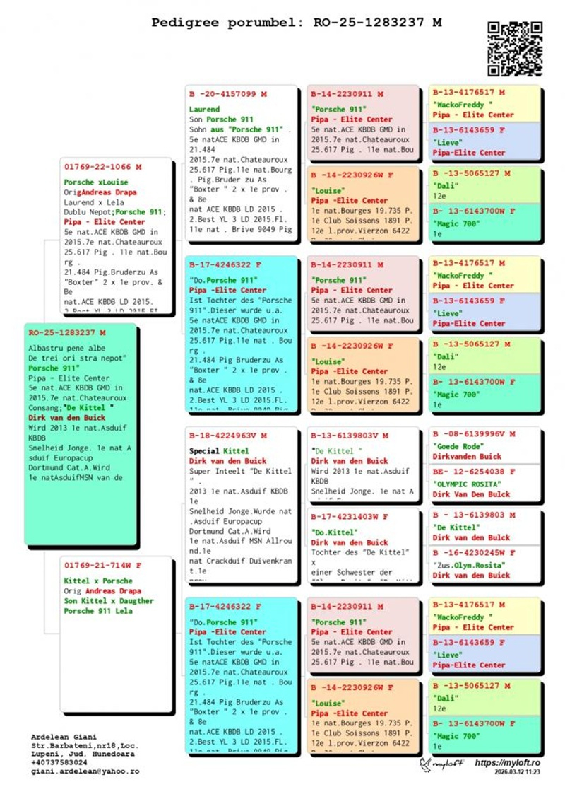 Derzeit bietet Herr Ardelean eine Gruppe von 12 Tauben mit Elite-Herkünften zum Verkauf an, die dazu bestimmt sind, die Tradition des Erfolges fortzusetzen. Die Ergebnisse von Züchtern, die diese Tauben in ihre Schläge integriert haben, bestätigen ihren genetischen Wert: