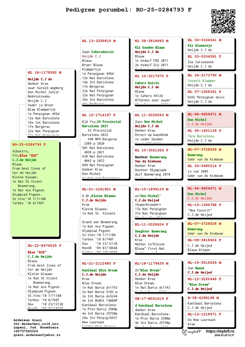 Derzeit bietet Herr Ardelean eine Gruppe von 12 Tauben mit Elite-Herkünften zum Verkauf an, die dazu bestimmt sind, die Tradition des Erfolges fortzusetzen. Die Ergebnisse von Züchtern, die diese Tauben in ihre Schläge integriert haben, bestätigen ihren genetischen Wert: