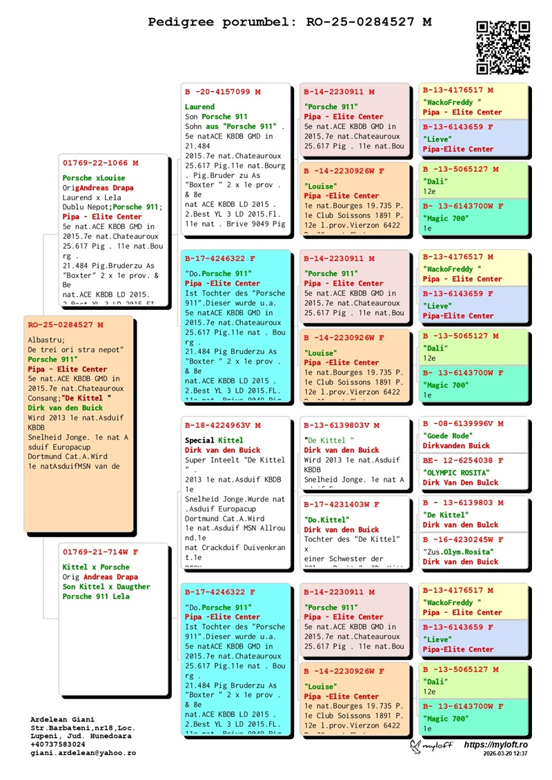Derzeit bietet Herr Ardelean eine Gruppe von 12 Tauben mit Elite-Herkünften zum Verkauf an, die dazu bestimmt sind, die Tradition des Erfolges fortzusetzen. Die Ergebnisse von Züchtern, die diese Tauben in ihre Schläge integriert haben, bestätigen ihren genetischen Wert: