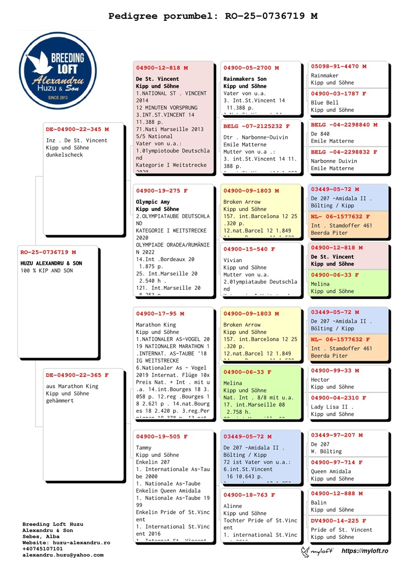 Alexandru Huzu hat es durch außergewöhnliche Anstrengungen und strenge Selektionsstrategien geschafft, seine Zuchtanlage zu einer der wertvollsten in Osteuropa zu machen. Er hat in Importe von den angesehensten Taubenzüchtern der Welt investiert, die sich auf verschiedene Kategorien wie Geschwindigkeit, Mittelstrecke, Langstrecke und Marathon spezialisiert haben. Zu diesen Züchtern gehören Jelle Jellema, Gaby Vandenabeele, die Familie Herbots, Pieter Veenstra, Jan Hoymans, Hans Eijerkamp, Dr. Brokamp, Anton und Luci van der Wegen, Ko van Domelen, Nouwen Paesen und viele andere.