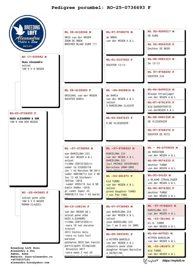 Alexandru Huzu hat es durch außergewöhnliche Anstrengungen und strenge Selektionsstrategien geschafft, seine Zuchtanlage zu einer der wertvollsten in Osteuropa zu machen. Er hat in Importe von den angesehensten Taubenzüchtern der Welt investiert, die sich auf verschiedene Kategorien wie Geschwindigkeit, Mittelstrecke, Langstrecke und Marathon spezialisiert haben. Zu diesen Züchtern gehören Jelle Jellema, Gaby Vandenabeele, die Familie Herbots, Pieter Veenstra, Jan Hoymans, Hans Eijerkamp, Dr. Brokamp, Anton und Luci van der Wegen, Ko van Domelen, Nouwen Paesen und viele andere.