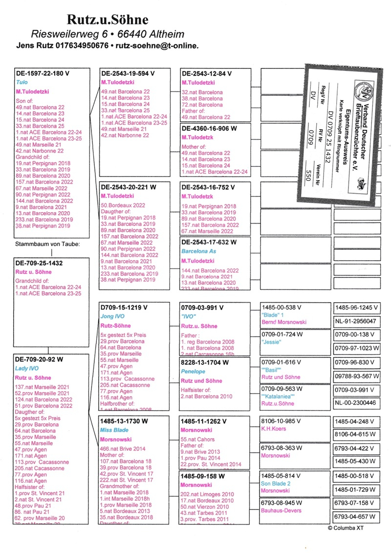 Die bekanntesten Züchter Deutschlands haben die Einladung von Hugo Kipp und Wolfgang Thomann positiv angenommen und junge Tauben von außergewöhnlicher Qualität gespendet.