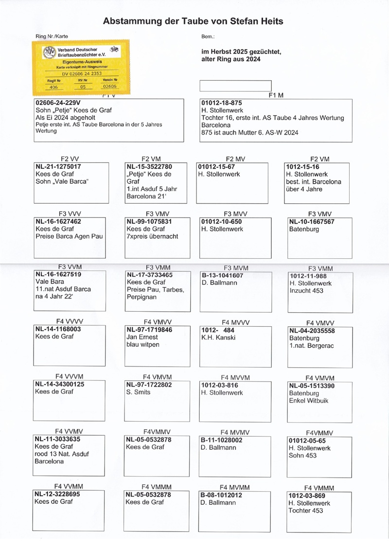 Die bekanntesten Züchter Deutschlands haben die Einladung von Hugo Kipp und Wolfgang Thomann positiv angenommen und junge Tauben von außergewöhnlicher Qualität gespendet.