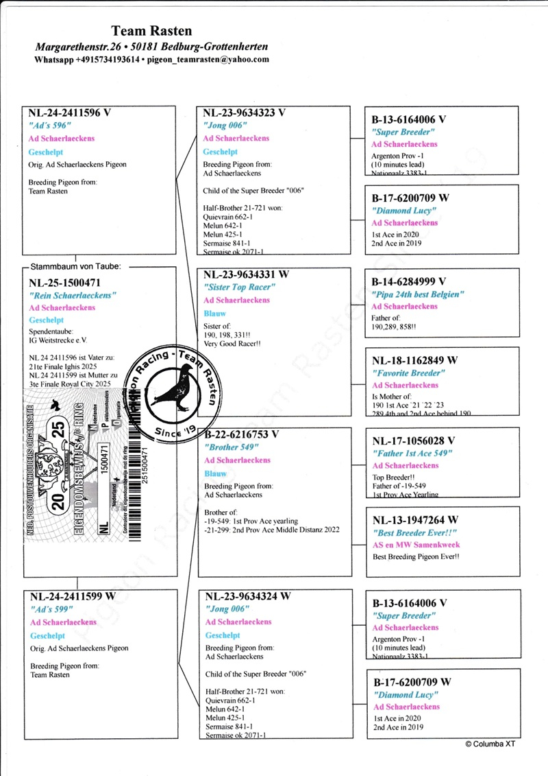 Die Tauben werden erst nach vollständiger Zahlung auf das unten angegebene Bankkonto geliefert: