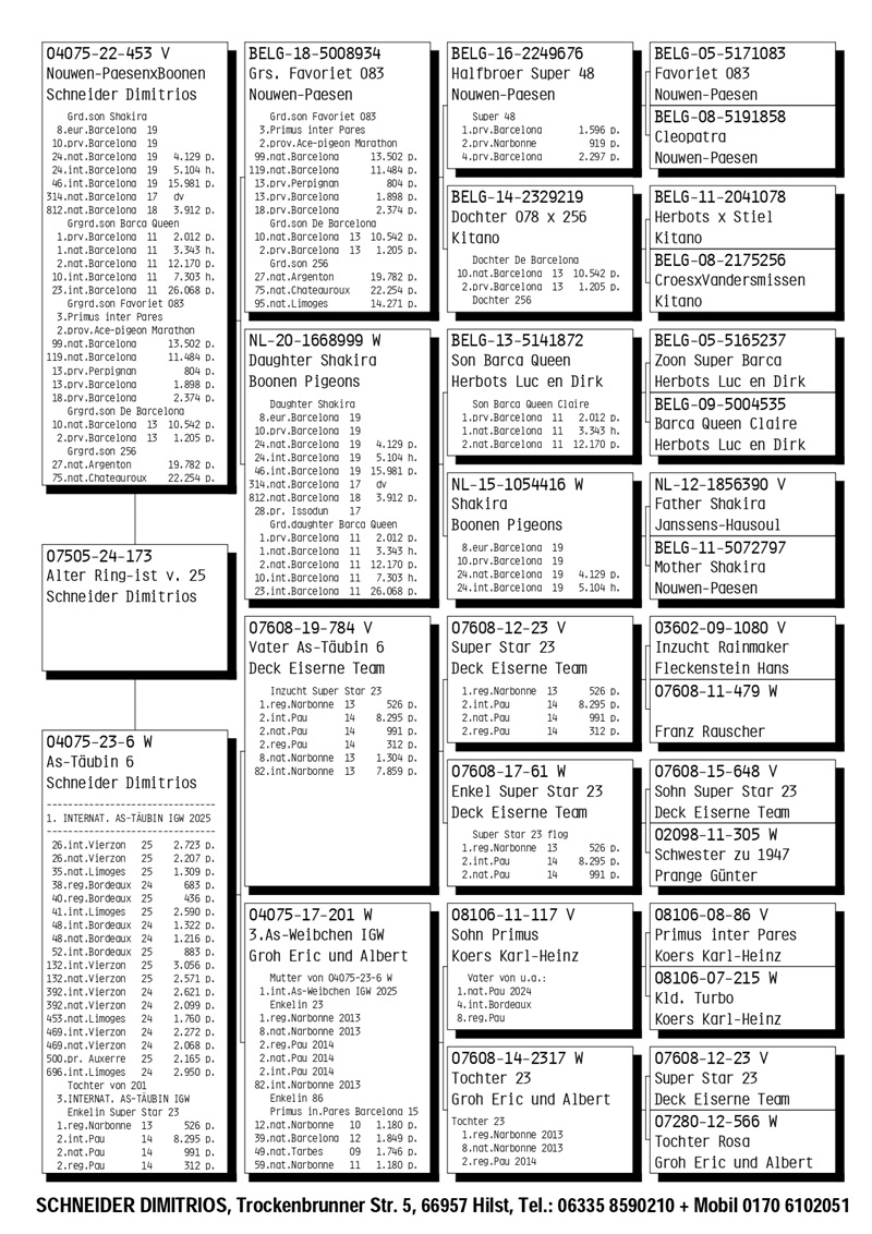 Die bekanntesten Züchter Deutschlands haben die Einladung von Hugo Kipp und Wolfgang Thomann positiv angenommen und junge Tauben von außergewöhnlicher Qualität gespendet.