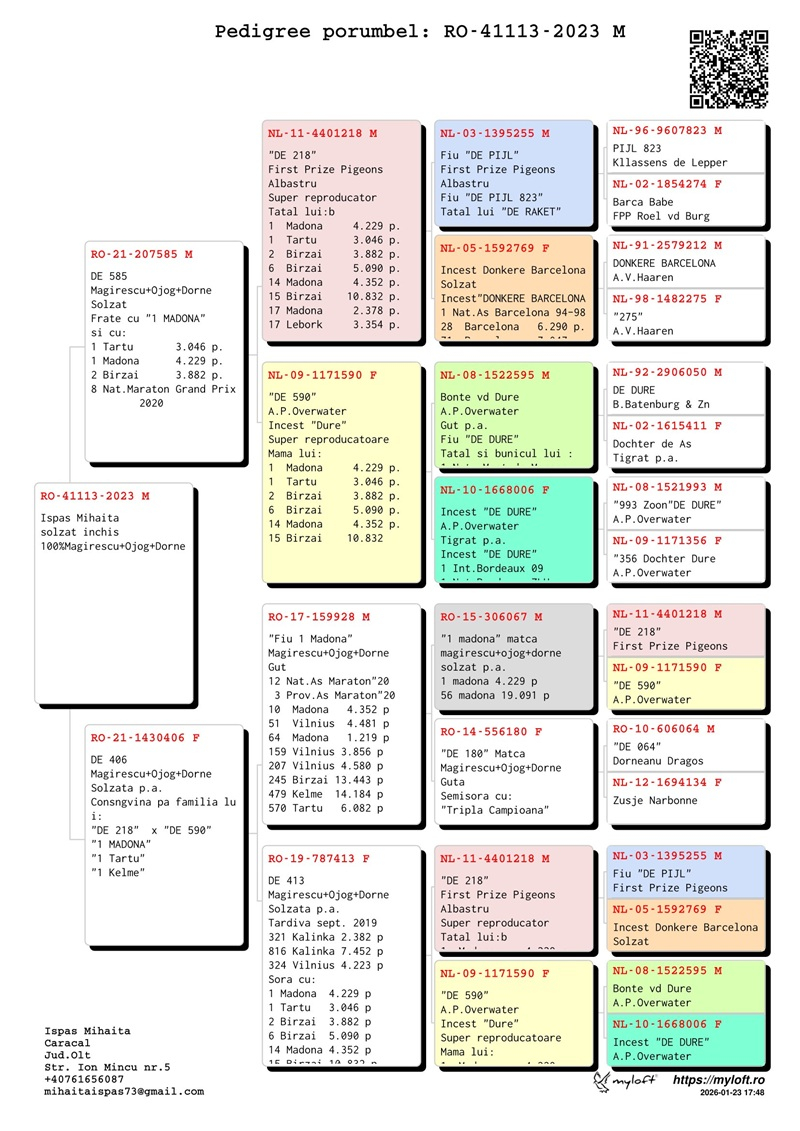 Der Protagonist dieses Erfolgs ist Ispas Mihăiță, ein in der Region bekannter Züchter, der bereits in der Vergangenheit in Langstreckenwettbewerben überzeugte. Er konzentrierte sich ausschließlich auf extreme Langstreckenrennen und verstand von Anfang an, dass der Schlüssel zum Erfolg in der Qualität der Tauben liegt. Auf der Suche nach Spitzenleistung studierte er die Arbeit führender Züchter in Rumänien und arbeitete mit ihnen zusammen. In seiner Zuchtabteilung finden sich nun Tauben des berühmten Trios Magirescu-Ojoc-Dorneanu sowie von Züchtern wie Cioacă Florin und Preda Gheorghe. Diese Strategie erwies sich als Schlüssel zum Erfolg, der mit dem Gewinn des 1. Platzes in der Nationalen As Maraton Tineret gekrönt wurde.