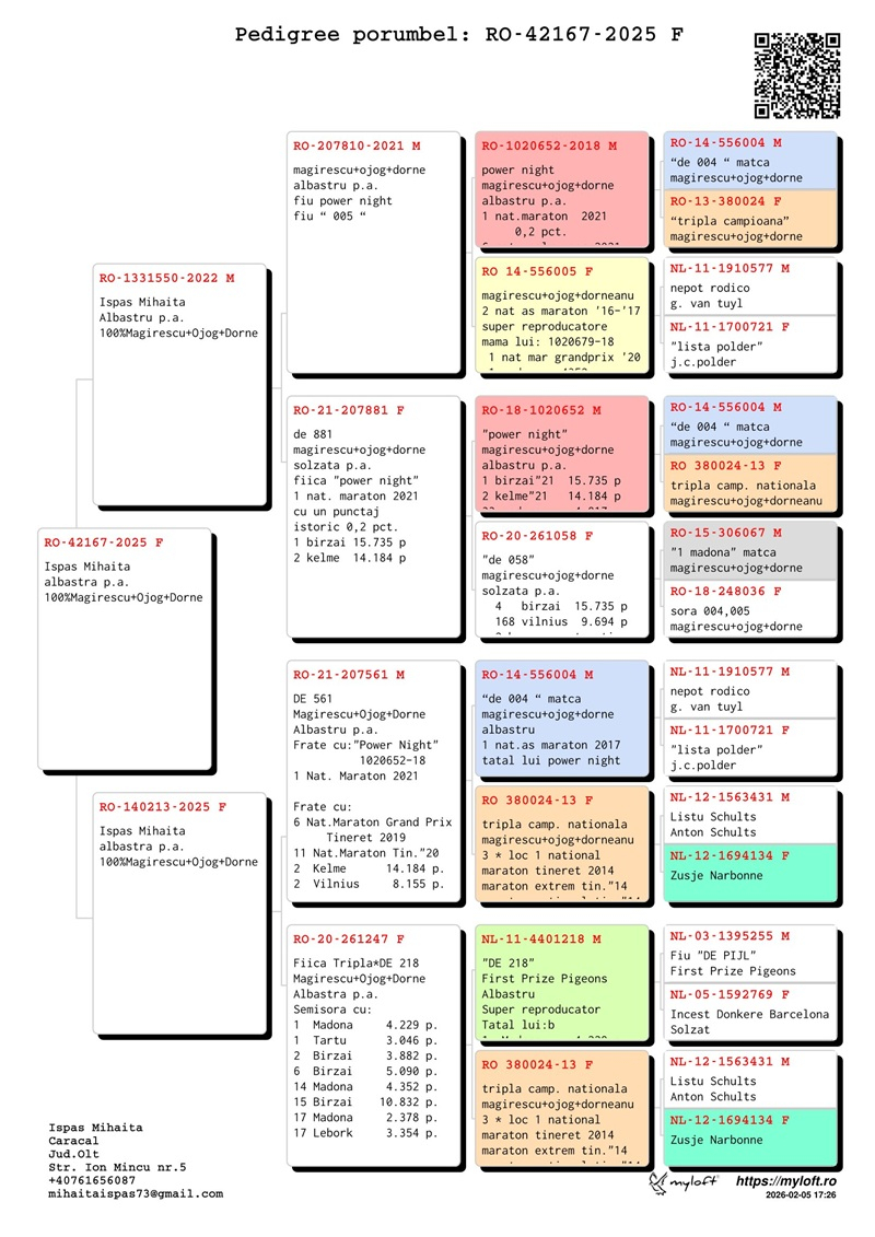 Der Protagonist dieses Erfolgs ist Ispas Mihăiță, ein in der Region bekannter Züchter, der bereits in der Vergangenheit in Langstreckenwettbewerben überzeugte. Er konzentrierte sich ausschließlich auf extreme Langstreckenrennen und verstand von Anfang an, dass der Schlüssel zum Erfolg in der Qualität der Tauben liegt. Auf der Suche nach Spitzenleistung studierte er die Arbeit führender Züchter in Rumänien und arbeitete mit ihnen zusammen. In seiner Zuchtabteilung finden sich nun Tauben des berühmten Trios Magirescu-Ojoc-Dorneanu sowie von Züchtern wie Cioacă Florin und Preda Gheorghe. Diese Strategie erwies sich als Schlüssel zum Erfolg, der mit dem Gewinn des 1. Platzes in der Nationalen As Maraton Tineret gekrönt wurde.