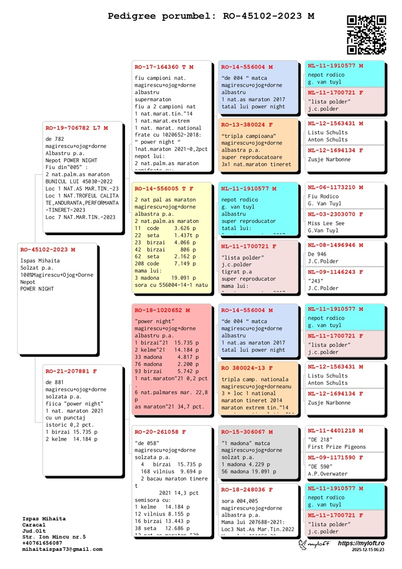 Der Protagonist dieses Erfolgs ist Ispas Mihăiță, ein in der Region bekannter Züchter, der bereits in der Vergangenheit in Langstreckenwettbewerben überzeugte. Er konzentrierte sich ausschließlich auf extreme Langstreckenrennen und verstand von Anfang an, dass der Schlüssel zum Erfolg in der Qualität der Tauben liegt. Auf der Suche nach Spitzenleistung studierte er die Arbeit führender Züchter in Rumänien und arbeitete mit ihnen zusammen. In seiner Zuchtabteilung finden sich nun Tauben des berühmten Trios Magirescu-Ojoc-Dorneanu sowie von Züchtern wie Cioacă Florin und Preda Gheorghe. Diese Strategie erwies sich als Schlüssel zum Erfolg, der mit dem Gewinn des 1. Platzes in der Nationalen As Maraton Tineret gekrönt wurde.