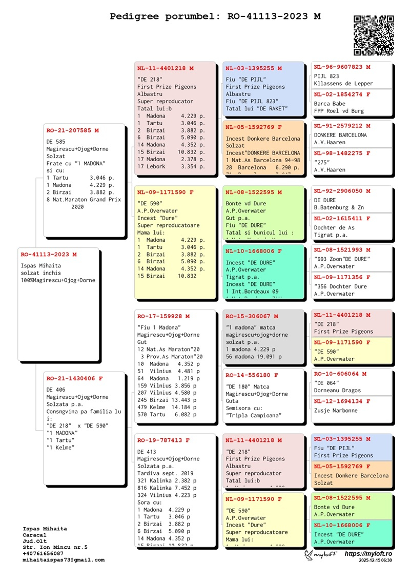 Der Protagonist dieses Erfolgs ist Ispas Mihăiță, ein in der Region bekannter Züchter, der bereits in der Vergangenheit in Langstreckenwettbewerben überzeugte. Er konzentrierte sich ausschließlich auf extreme Langstreckenrennen und verstand von Anfang an, dass der Schlüssel zum Erfolg in der Qualität der Tauben liegt. Auf der Suche nach Spitzenleistung studierte er die Arbeit führender Züchter in Rumänien und arbeitete mit ihnen zusammen. In seiner Zuchtabteilung finden sich nun Tauben des berühmten Trios Magirescu-Ojoc-Dorneanu sowie von Züchtern wie Cioacă Florin und Preda Gheorghe. Diese Strategie erwies sich als Schlüssel zum Erfolg, der mit dem Gewinn des 1. Platzes in der Nationalen As Maraton Tineret gekrönt wurde.