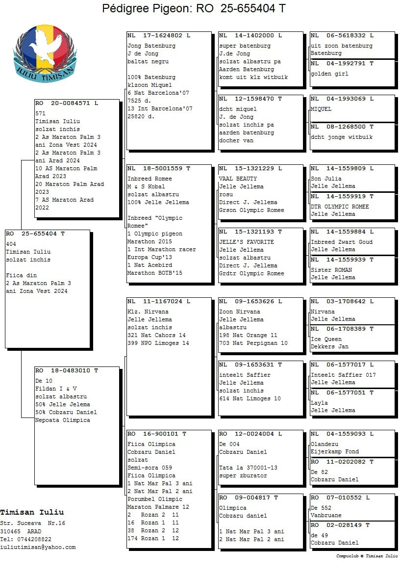Jede Taube stammt aus sorgfältig ausgewählten Linien, wird individuell betreut und mit größter Aufmerksamkeit aufgezogen, um ein außergewöhnliches sportliches Potenzial zu gewährleisten.